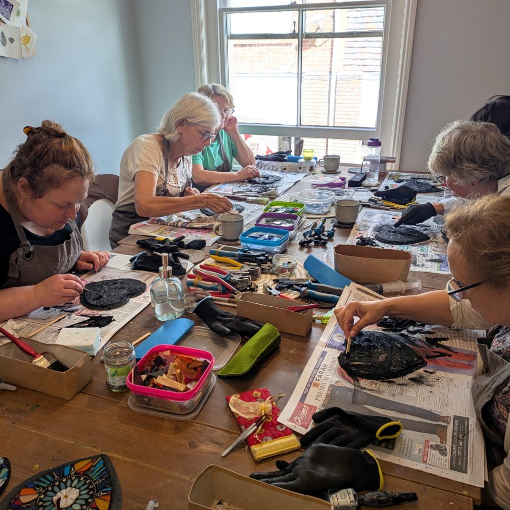 Join Carly for a highly creative and relaxing workshop where you’ll re-purpose stained glass and mixed media to create a beautiful mosaic on a slate background.