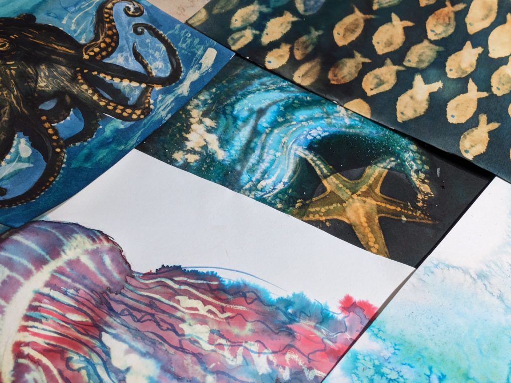 Discover the captivating world of ink and bleach art with our upcoming workshop, where you’ll learn to create stunning paintings inspired by the sea. This unique process involves the reaction between ink and bleach, allowing you to explore a fascinating range of tones and textures. Under the guidance of our experienced teacher, you’ll experiment with colored inks and various tools, bringing depth and vibrancy to your work. Whether you’re a beginner or an artist looking to try something new, this workshop offers a perfect opportunity to expand your creative horizons. With all materials provided, you’ll leave with your own beautiful, inspired masterpieces. Join us and immerse yourself in the enchanting art of ink and bleach!
