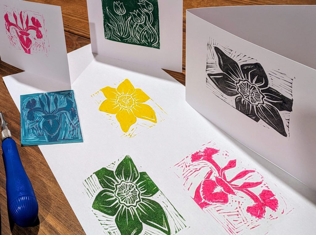 Get creative and design your own unique handprinted prints using linocut techniques! In this session, you’ll have the opportunity to work on one design and cut a lino you can print from many times.  We have a choice of templates you can use, or you can draw your own design. Feel free to bring along any reference images for inspiration. You’ll be guided through the process, from planning and transferring your design to carving and proofing it, before finally printing your masterpiece. We will have some festive & winter templates.