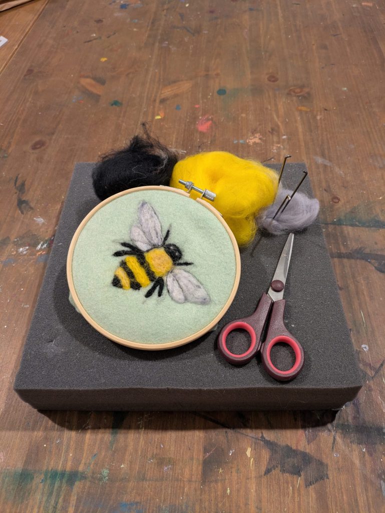 Join us for a relaxed and creative needle felting workshop where you’ll learn how to create a charming bumble bee design in an embroidery hoop. This hands-on class is perfect for beginners and anyone looking to try a new craft.