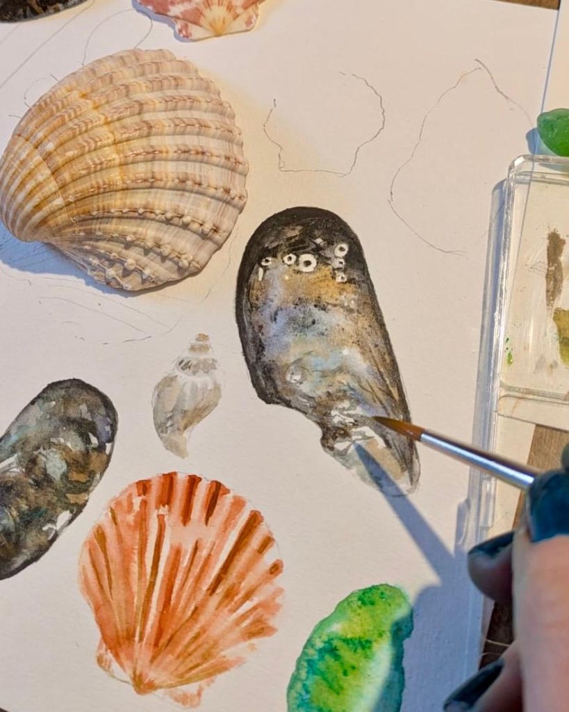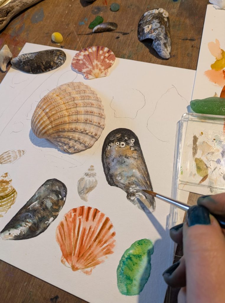 Join us in a delightful paint-along workshop where you’ll paint shells using watercolours. This fully guided session is designed to cater to both absolute beginners and seasoned artists seeking a more relaxed approach. We’ll begin by exploring the essential materials you’ll need, including brushes, paper, and a select palette of colours specifically chosen for our shells. As we delve into the painting process, you’ll learn key techniques such as layering to build depth and how to manipulate tone and texture to bring your shells to life. Our step-by-step guidance ensures that you’ll gain confidence in your skills, and by the end of the workshop, you’ll have a stunning masterpiece!